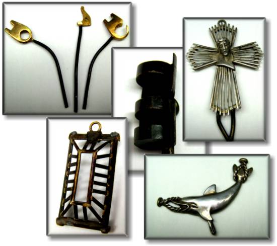 anelli, pendenti, cerniere, orecchini, porta chiavi, croci, girocolli, chiusure.
